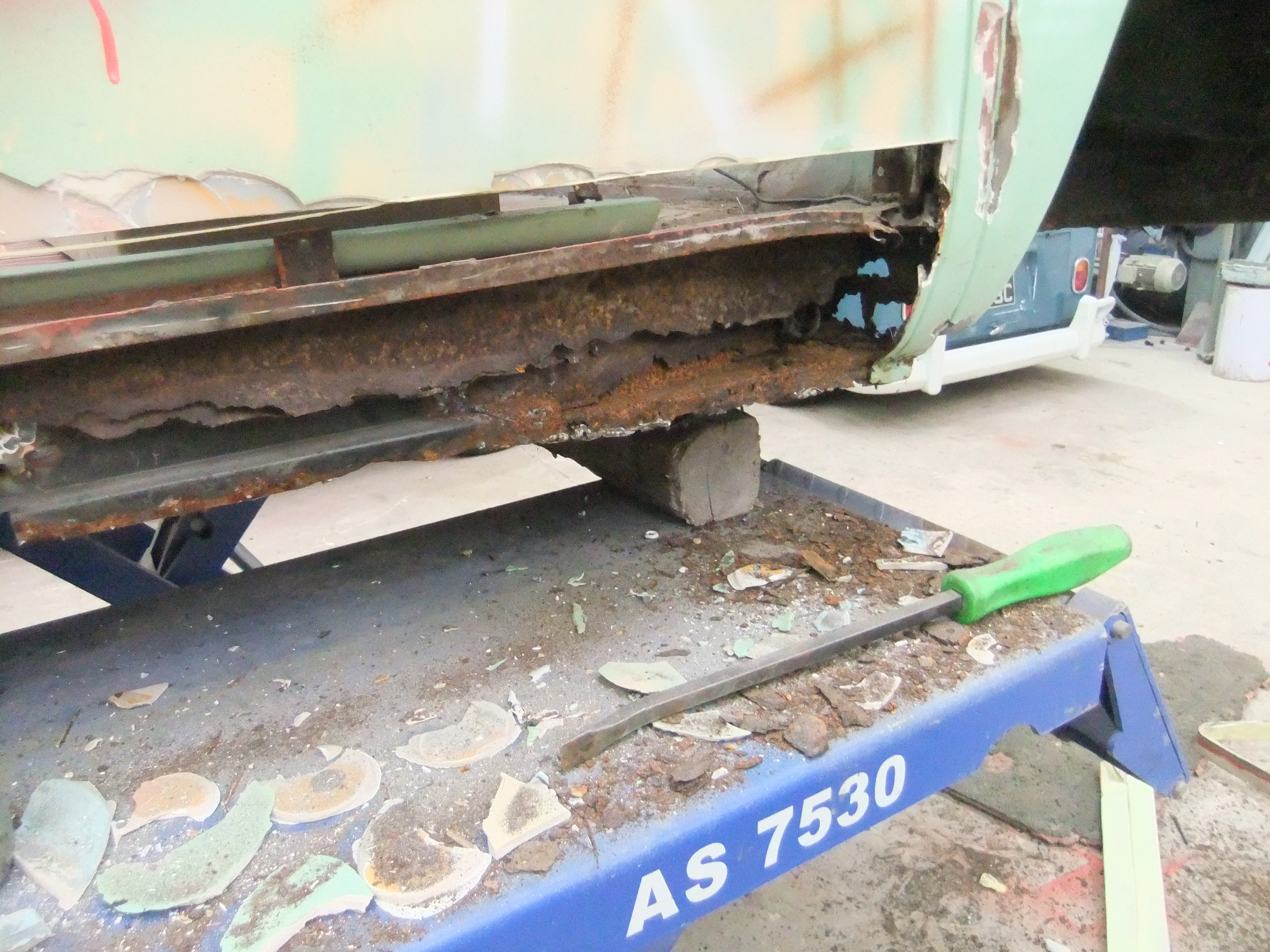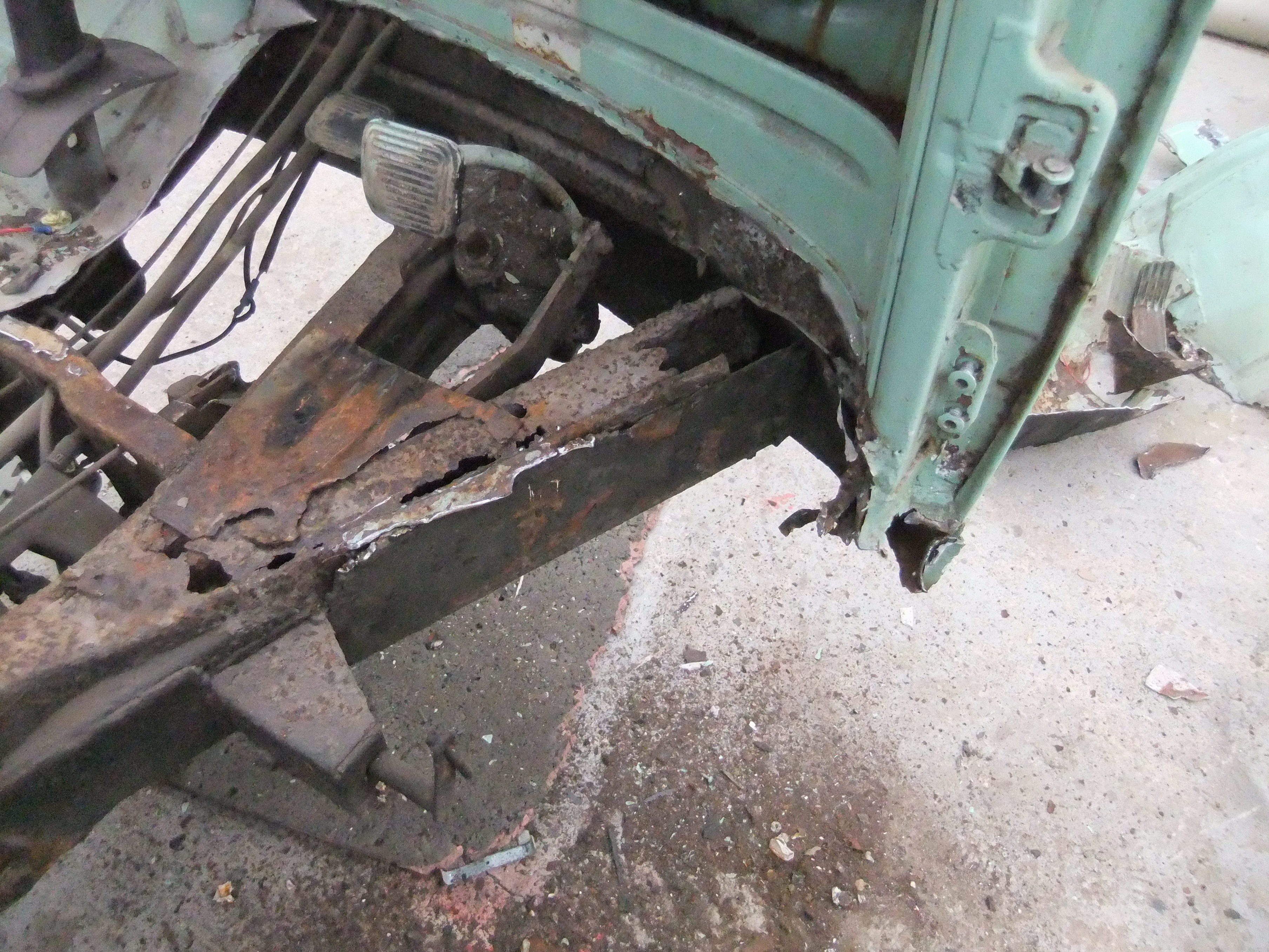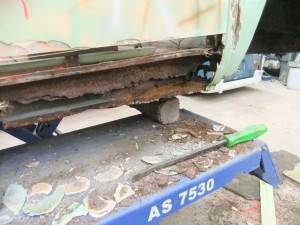 This is where it gets a little crazy… the decision was made to remove the body from the chassis. Body cuts were sourced again from Rick at Alan Schofields. When we started to make the cuts required the sills on the nearside didn’t even need cutting off one hit with the hammer and they broke away.